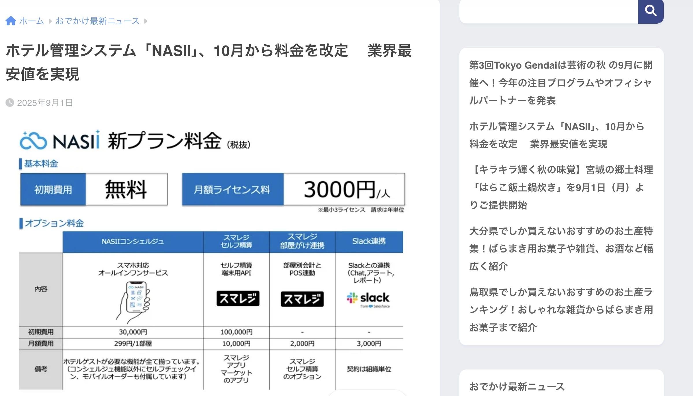 Atlas Log〜旅で描く、自分だけの地図〜にて紹介されました。 ホテル管理システム「NASII」、10月から料金を改定 業界最安値を実現